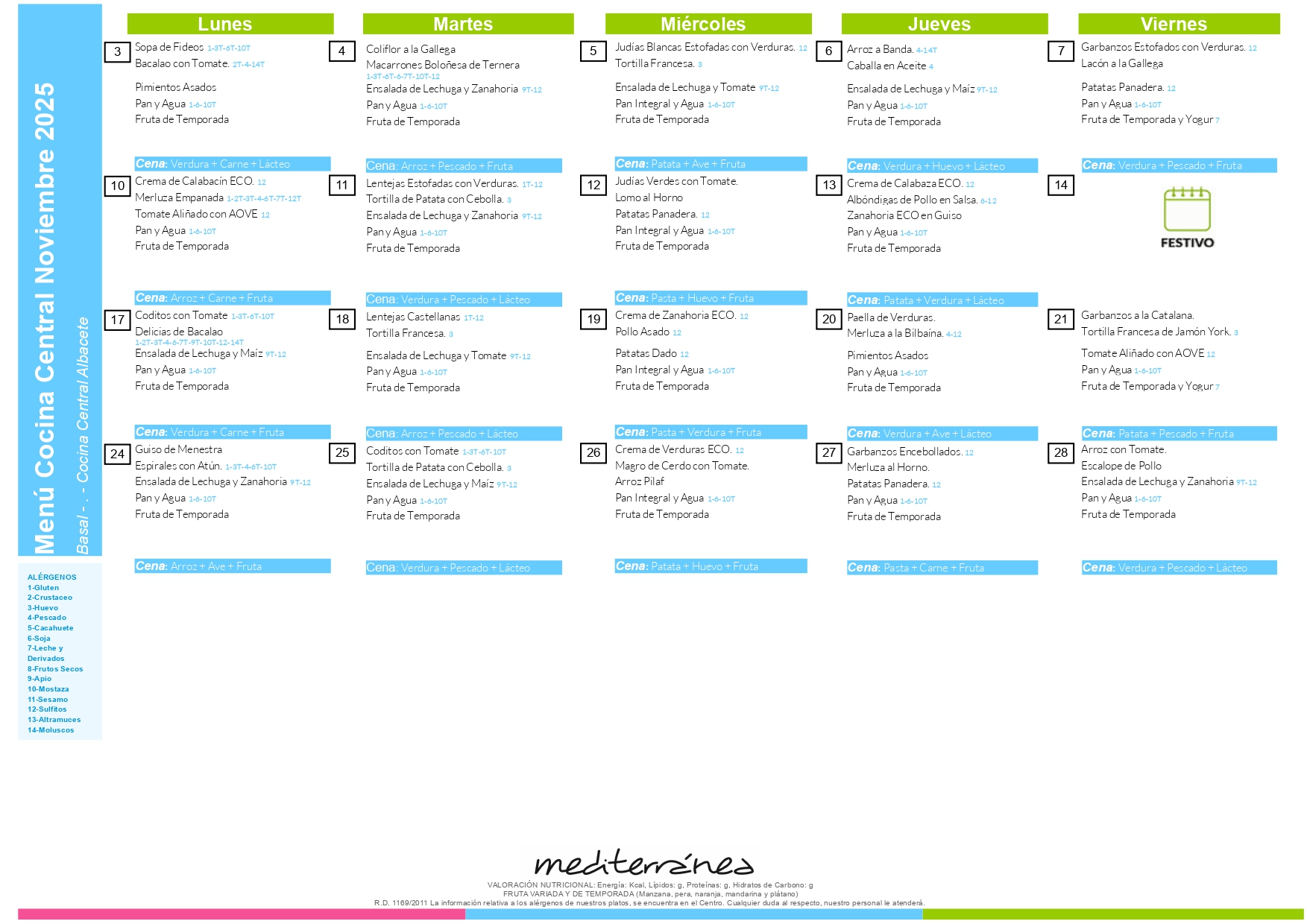 MENÚ COMEDOR ESCOLAR NOVIEMBRE